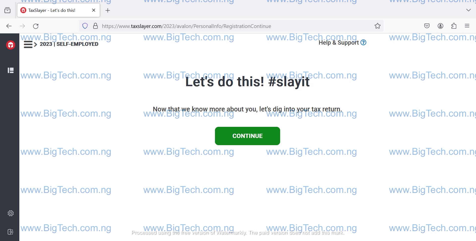 * Open a new tab on your browser. Then head to taxslayer.com and Click Continue.